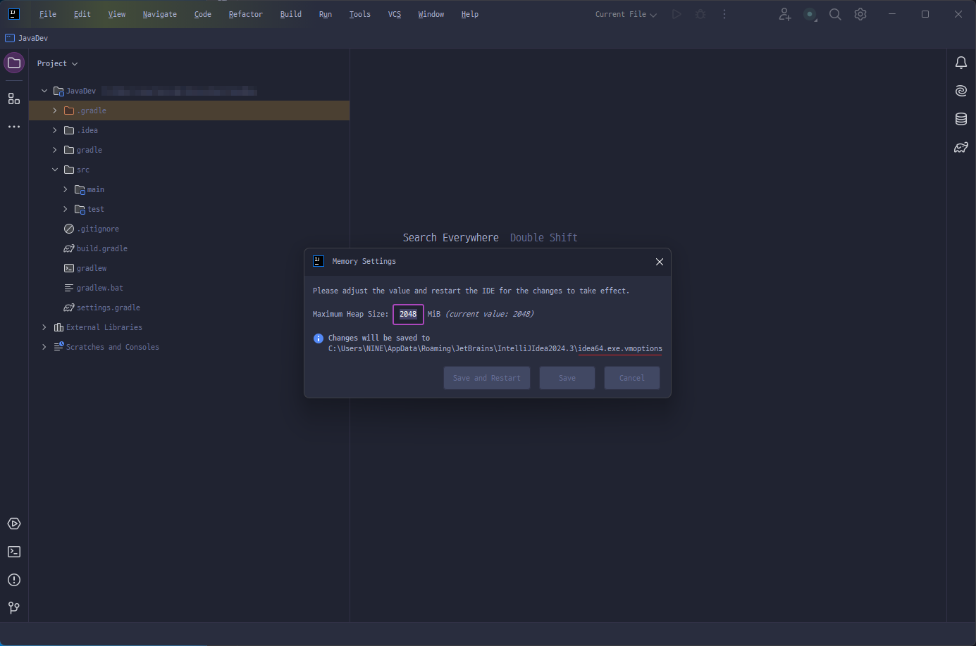IntelliJ IDEA에서 메모리 힙 사이즈에 대해 전역 설정과 애플리케이션 별로 설정하는 방법을 알아본다.