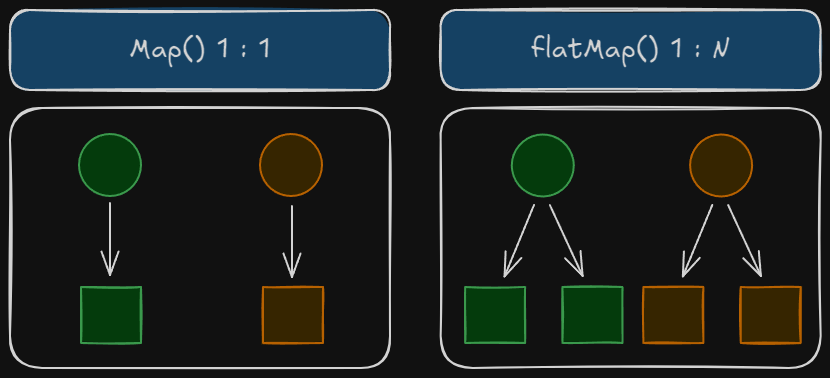 ๋ ๊ฐ๋ ฅํ ๋ฐ์ดํฐ ์ฒ๋ฆฌ ๋๊ตฌ๋ก,ย map()๊ณผย flatMap()์ ์คํธ๋ฆผ ์์๋ฅผ ๋ณํํ๋ ํต์ฌ ์ฐ์ฐ์์ด๋ค.