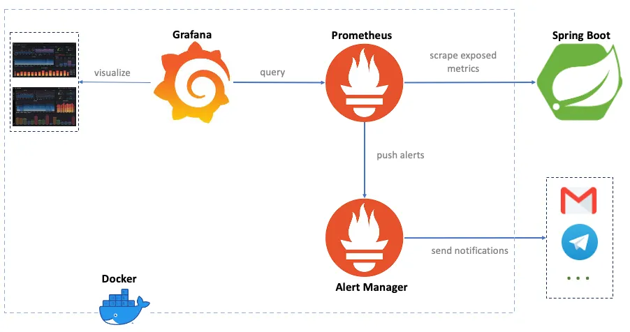 📌개요 Spring Boot 프로젝트에서 Prometheus, Grafana를 연동해 시간의 흐름에 따라 변동되는 메트릭(Metrics) 데이터를 시각화해보자.
