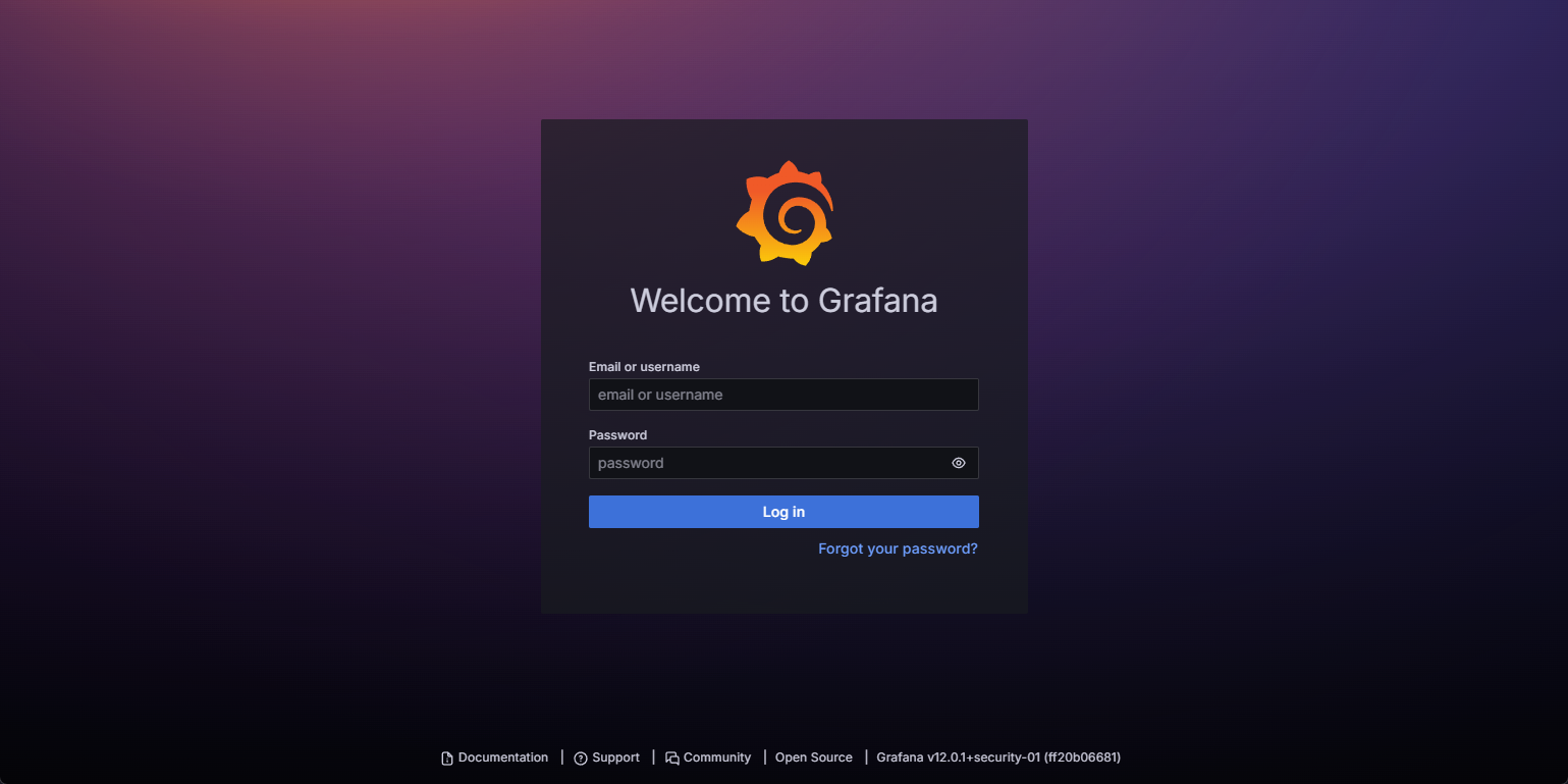 grafana | logger = settings t = 2025-06-17T12:40:19.580946399Z level = info msg = "Starting Grafana" version = 12.0.1+security-01 commit = ff20b06681749873999bb0a8e365f24fddaee33f branch = HEAD compiled = 2025-06-17T12:40:19Z